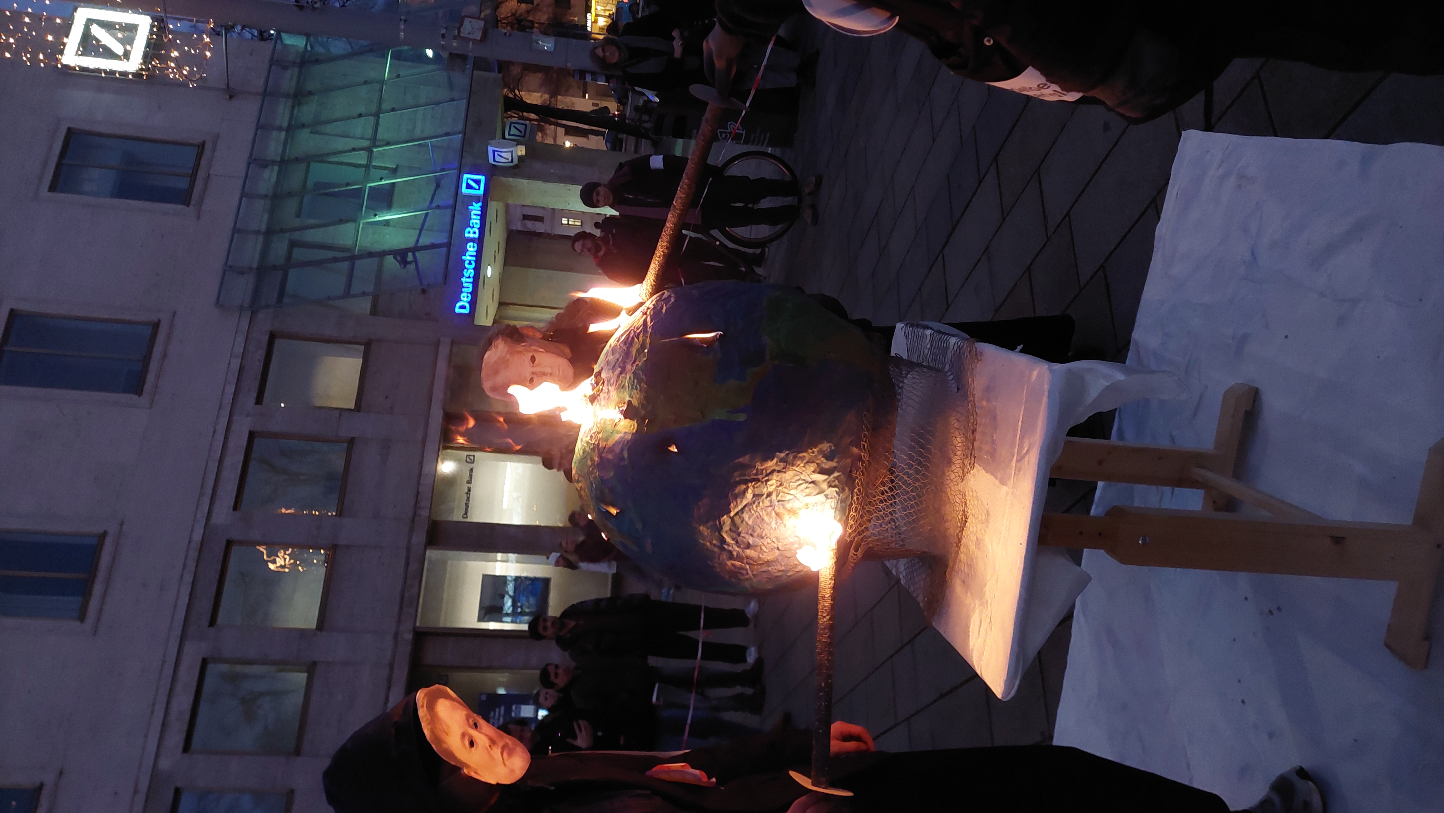 All das nahmen Klimaaktivist*innen zum Anlass und Organisierten eine Veranstaltung, die zeigt wie Milliardäre die Welt verbrennen. Anschließend soll es einen Trauermarsch geben. Mit der Aktion wollen sie sich den Aktionen von XR anschließen, die in ähnlicher Form in ganz Deutschland verschiedene Aktionen organisiert hatten.